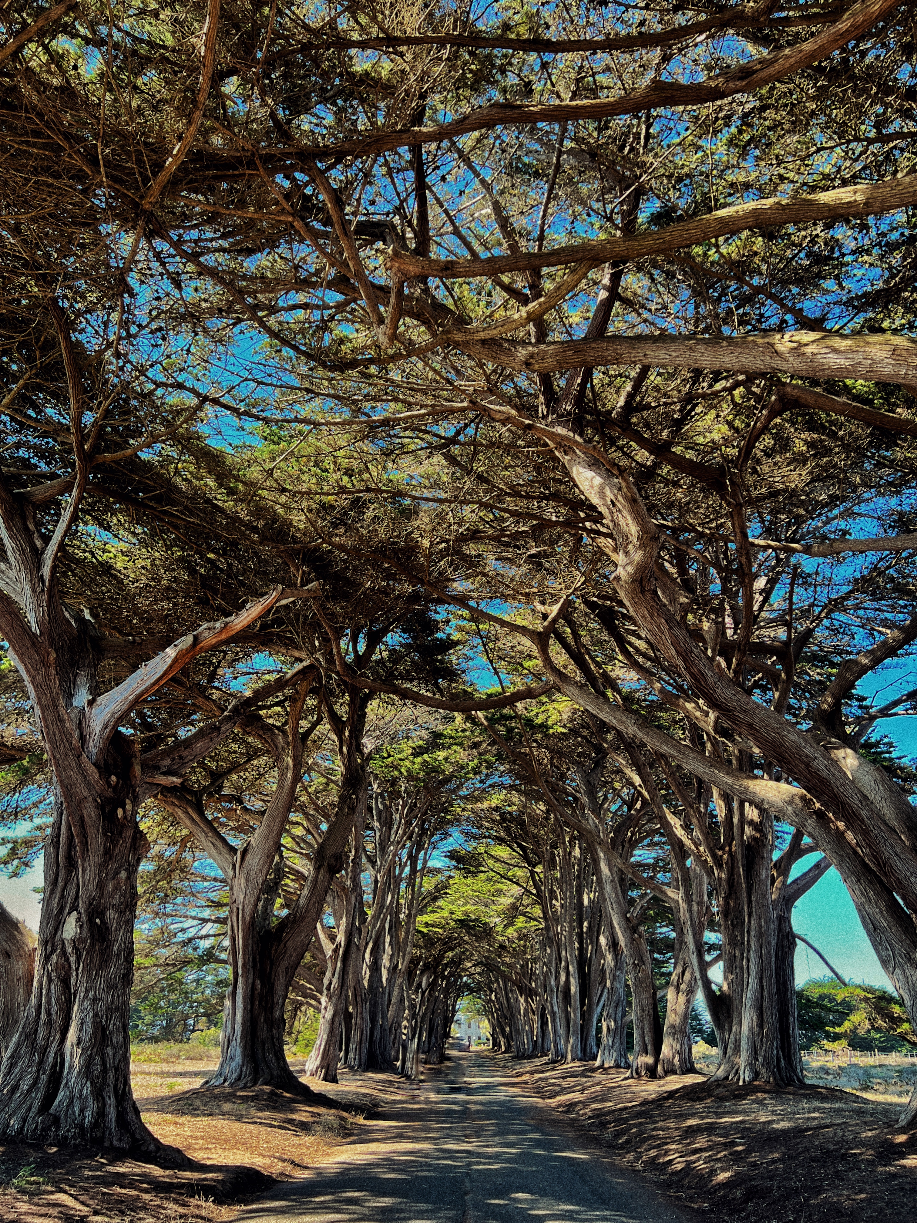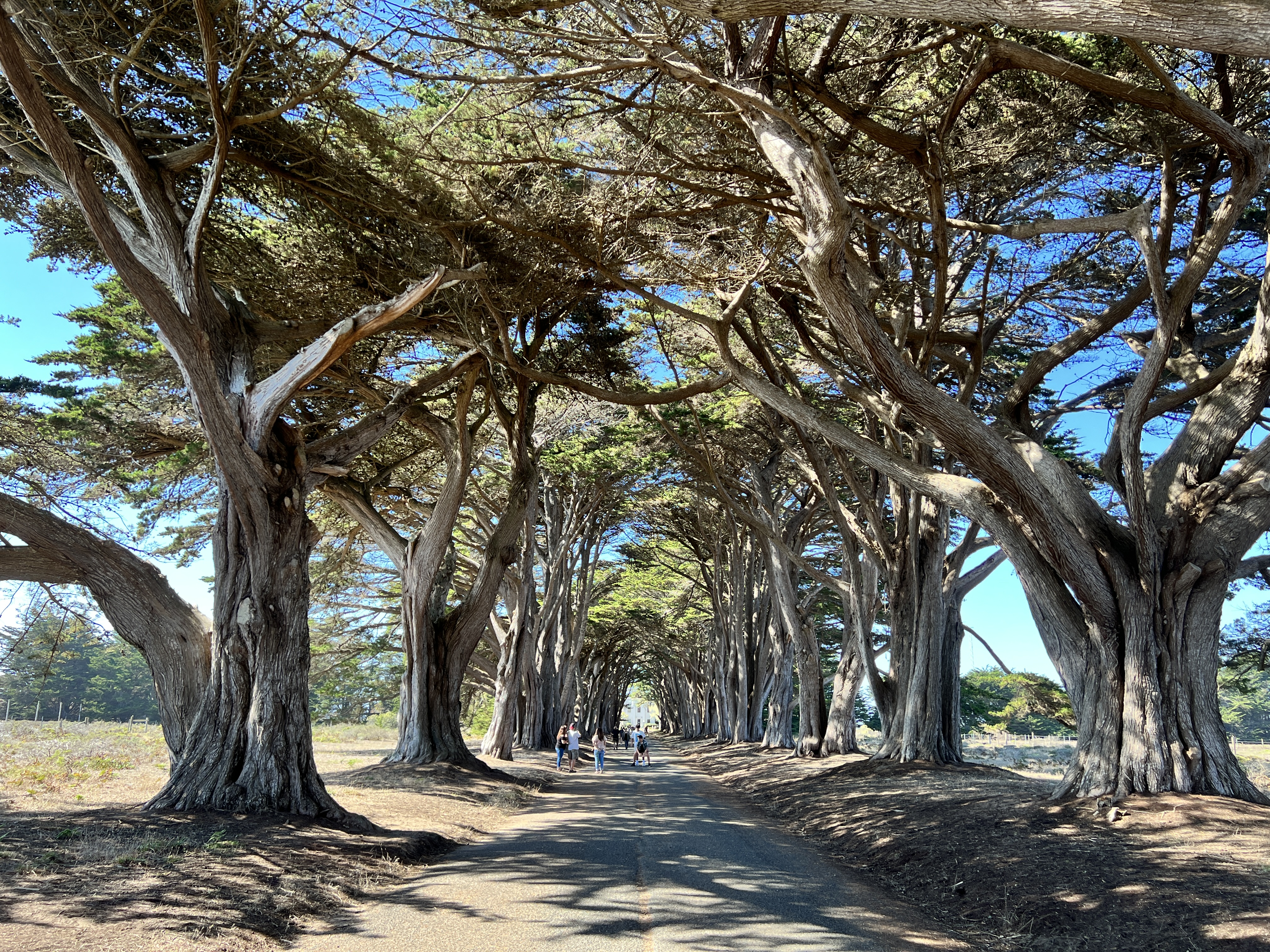 포인트 레이스 트레일 헤드를 찍고 가던 중 도로에 주차가 쭉 되어있길래, 어? 여기 뭐가 있나? 하고 내렸다가 발견한 Cypress Tree Tunnel. 어마어마하게 큰 나무들이 일정한 간격으로 쭉 심어져 있는 모습이 정말 장관이었다.