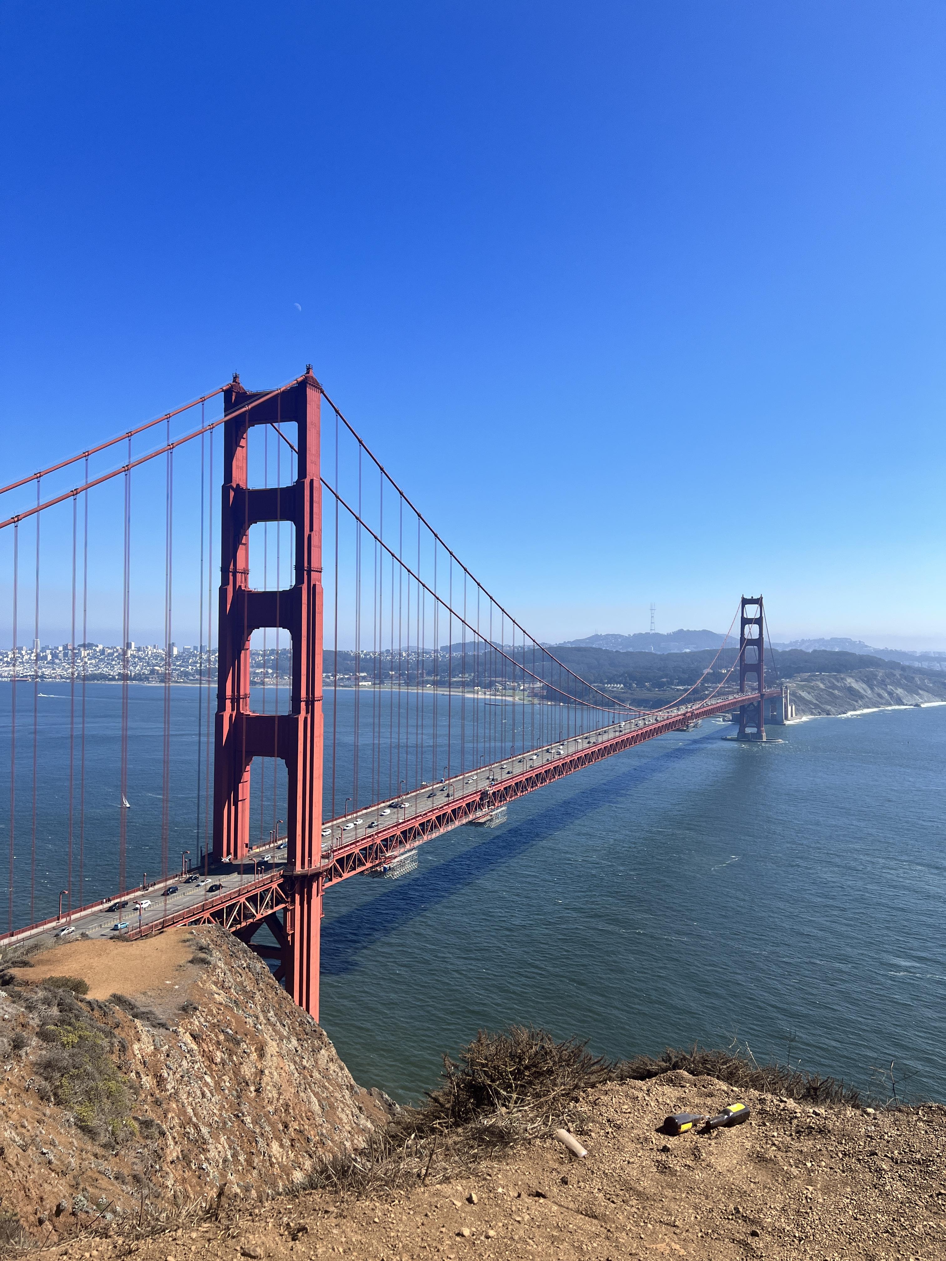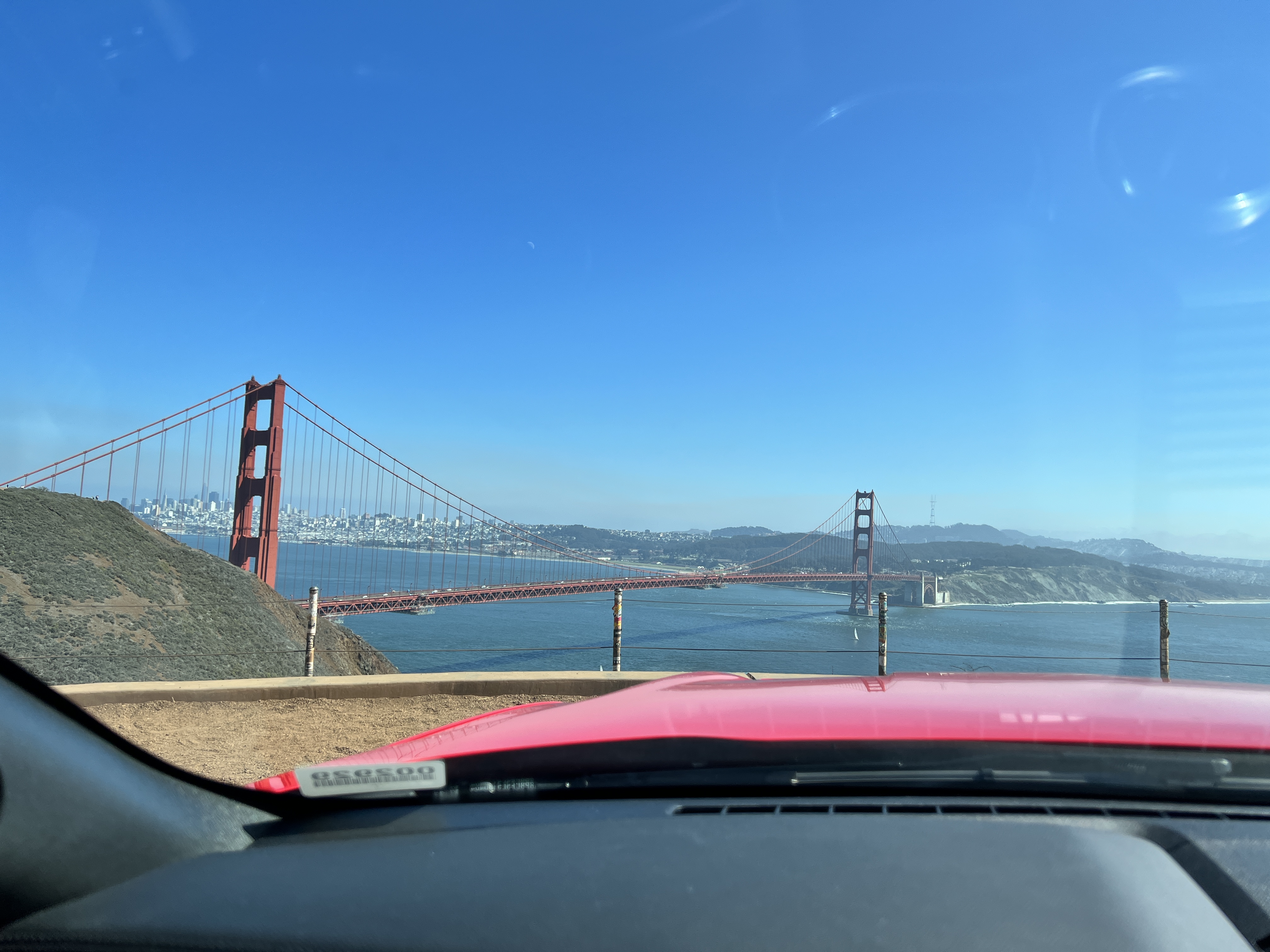 네비게이션을 찍고 나면 터널을 지나 한참을 구불구불하게 언덕을 올라가야하는데, 어느 순간부터 금문교가 보이기 시작하고 갓길에 차들이 쭉 주차되어 있다. 일방통행 길이라 한 번 지나가고 나면 언덕을 다시 끝까지 내려가야되기 때문에, 자리가 나면 바로 주차를 해야 한다.